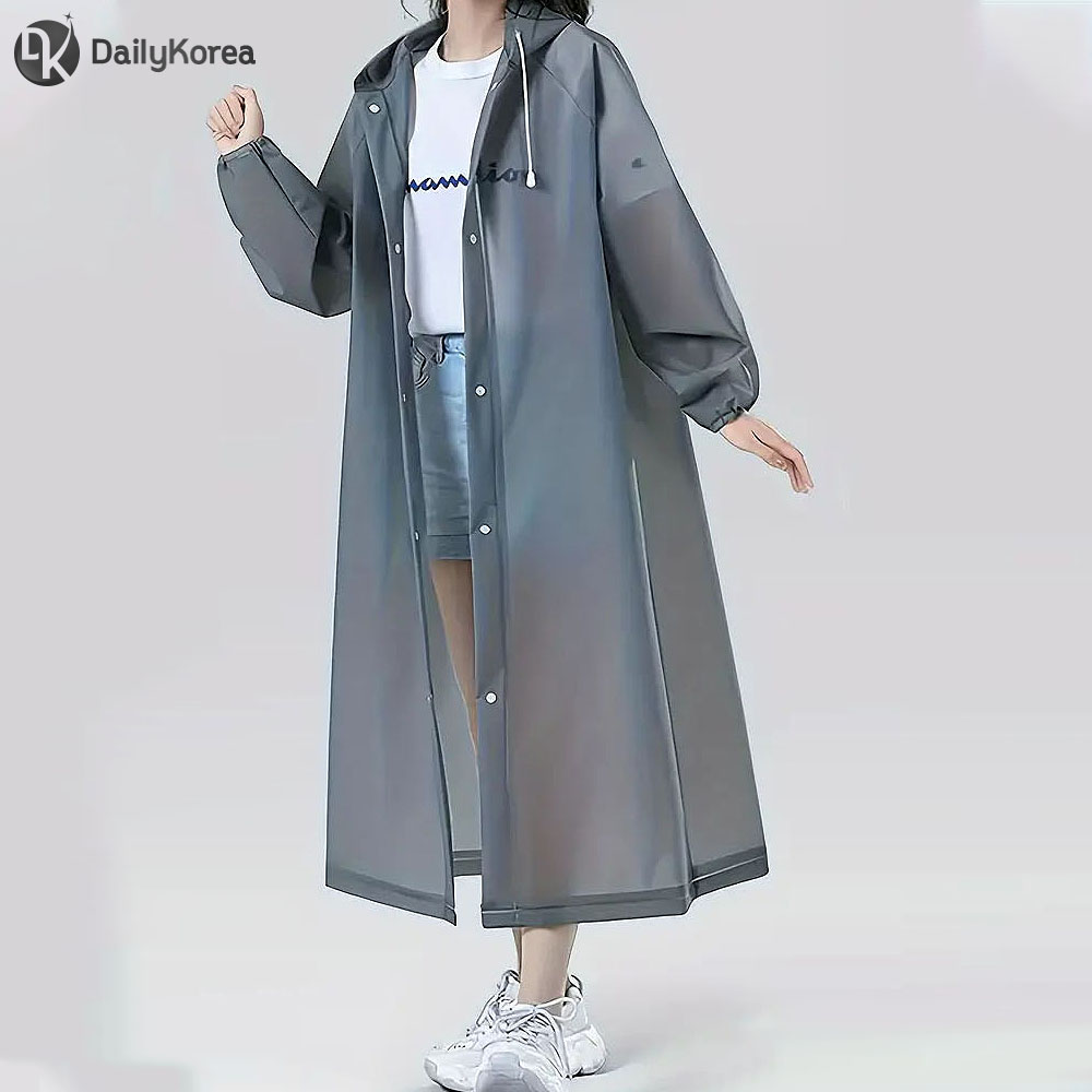 - 두꺼운 휴대용 우비 다크그레이 비옷 바람막이 D
