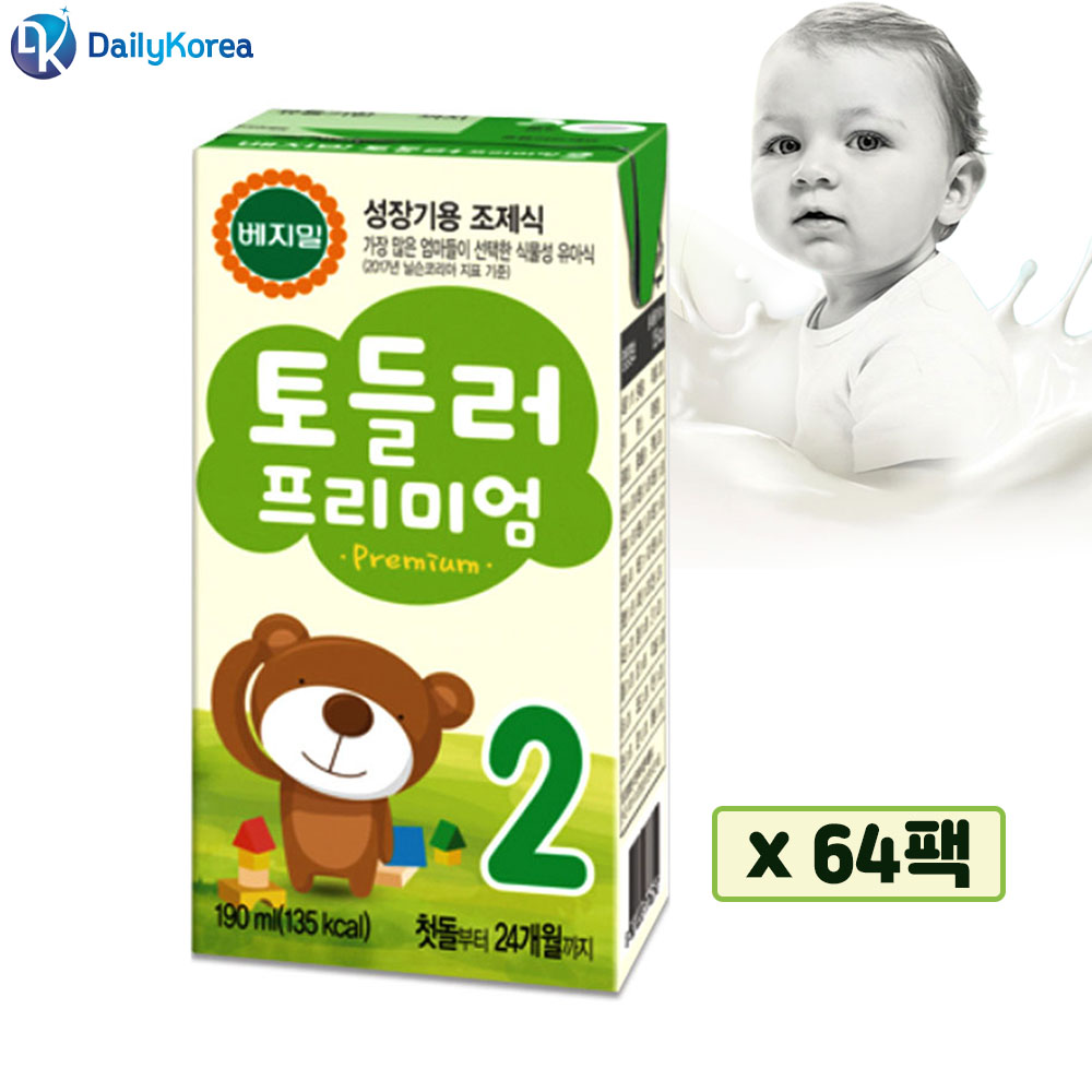 베지밀 토들러 프리미엄 2단계 190mlx64팩 아기 두유 이유식 유아식 성장 발달 영아 간식 D